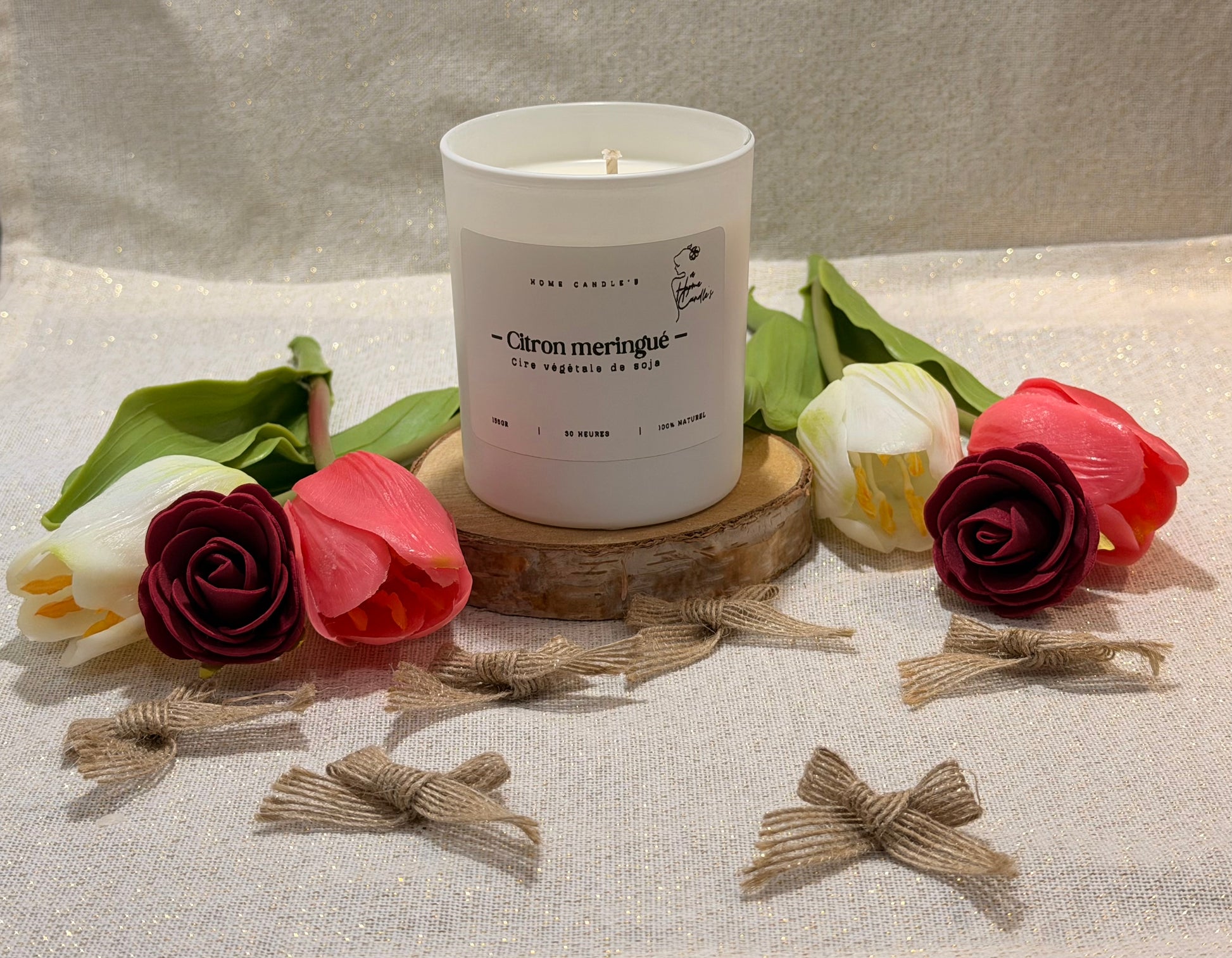 Laissez-vous séduire par la fraîcheur gourmande de notre bougie parfumée Citron Meringué.