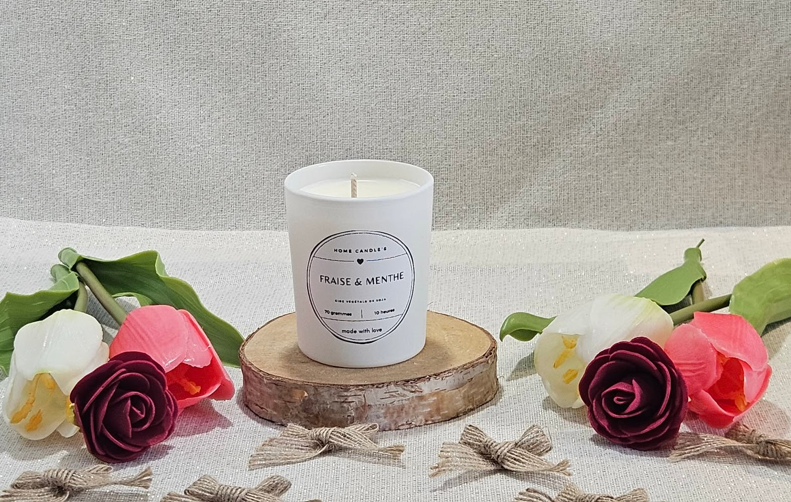 Laissez-vous séduire par la fraîcheur gourmande de notre bougie parfumée Fraise et Menthe.