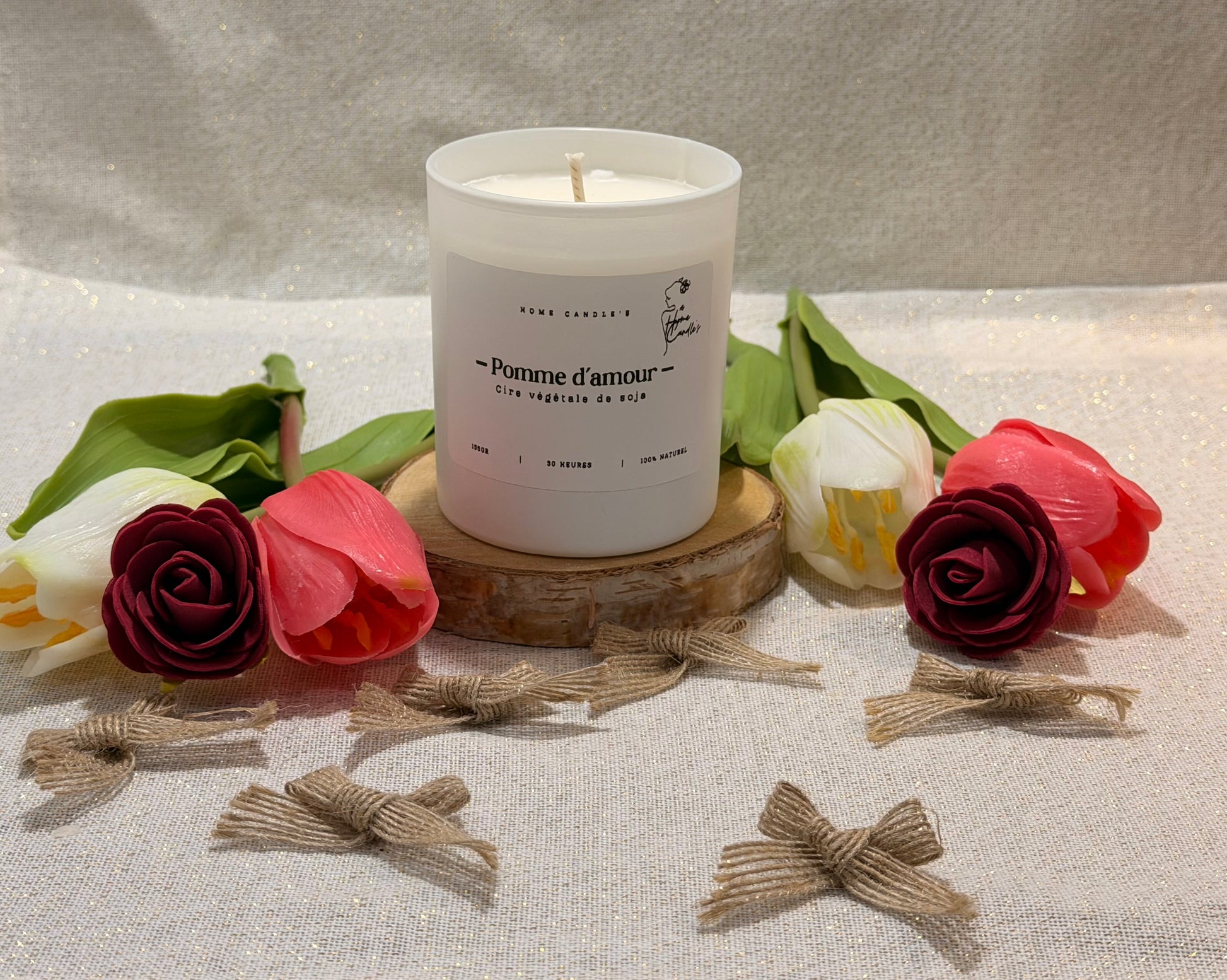 Laissez-vous envoûter par la gourmandise sucrée de notre bougie parfumée Pomme d’Amour.
